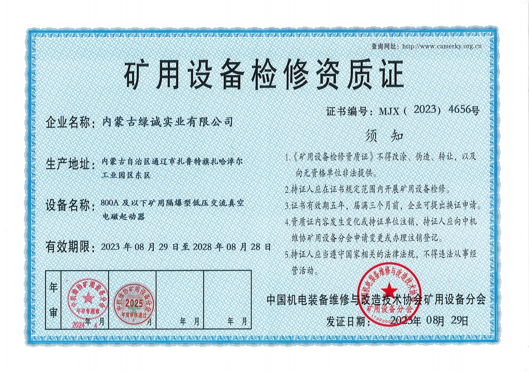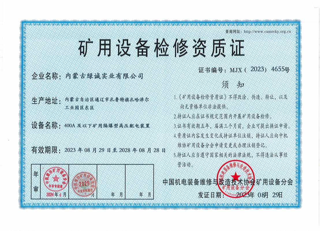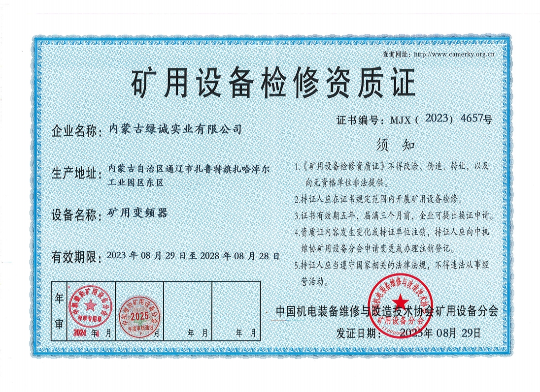 2018年我公司通過中國機電裝備維修與改造技術(shù)協(xié)會礦用設(shè)備分會審核并取得了9項礦用設(shè)備檢修資質(zhì)證書。公司本著“誠信為本 質(zhì)量為先 全心全意為客戶 ”的服務(wù)理念,圓滿完成各個廠礦的機械維修及配套服務(wù),期待與您共同合作。